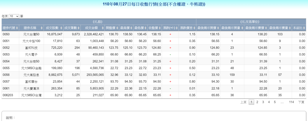 'subtitle9': '110年08月27日每日收盤行情(全部(不含權證、牛熊證))'}